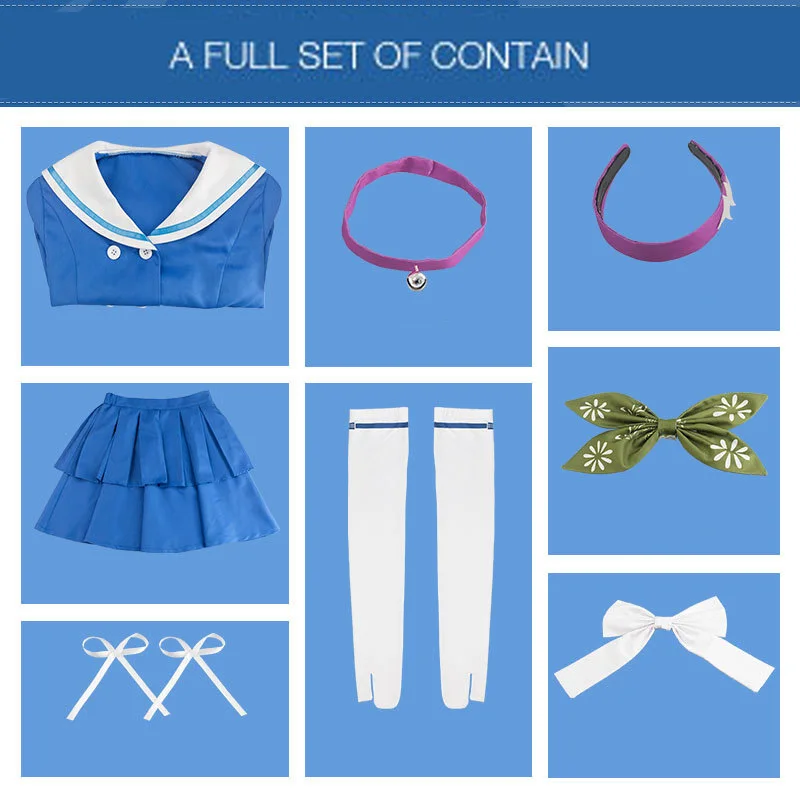 Product contains: Top + skirt + socks + bow tie + headwear + hairpin + bell