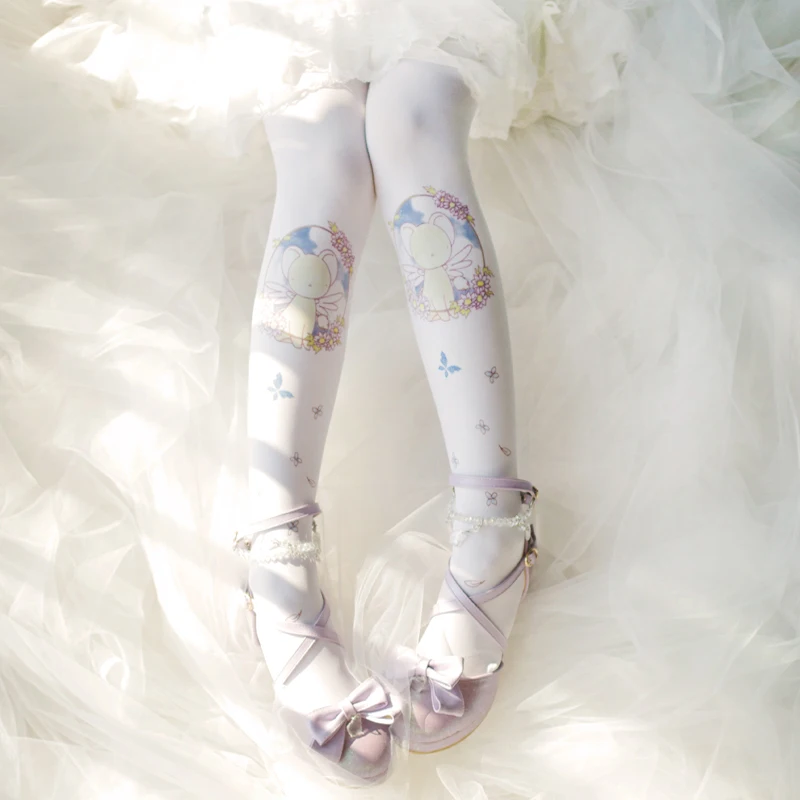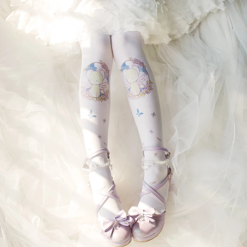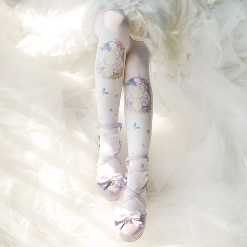 Anime CERBERUS cartoon Card Captor SAKURA Lolita Japanese sweet loli girl cherry print stockings cute lolita soft girl COS socks