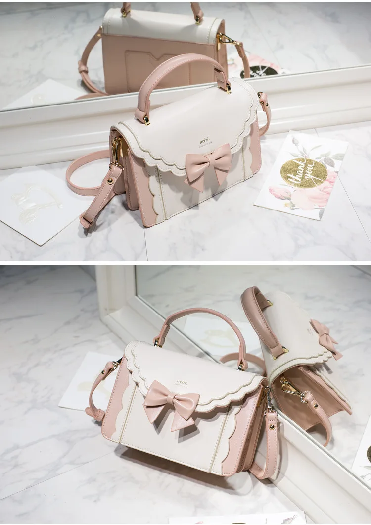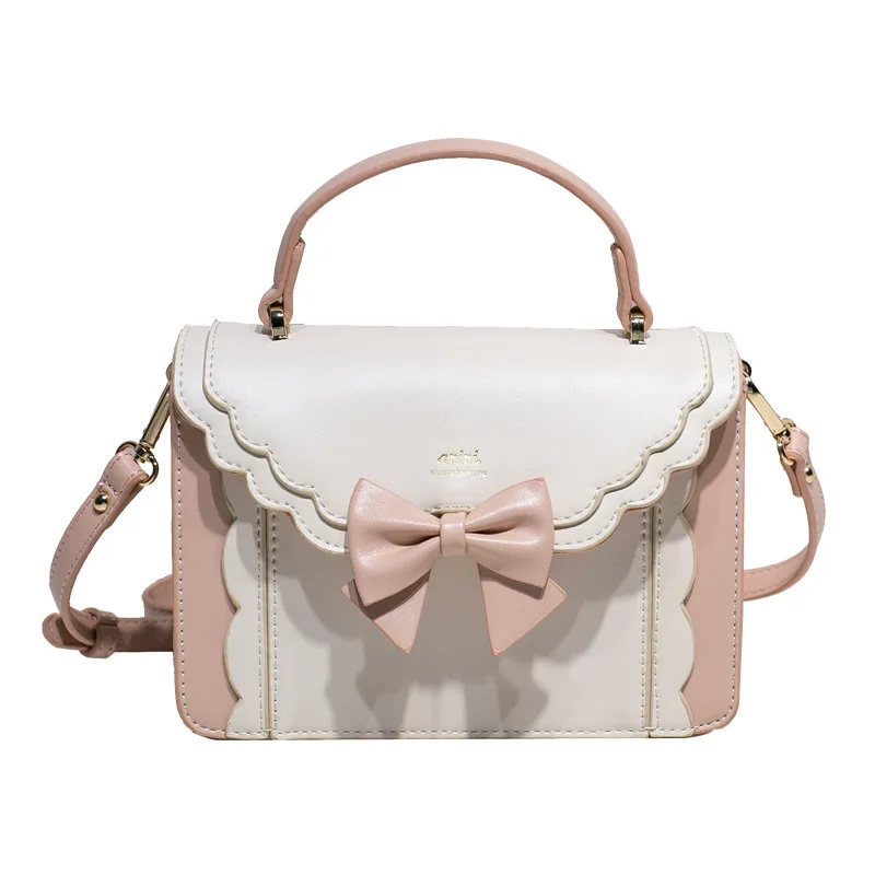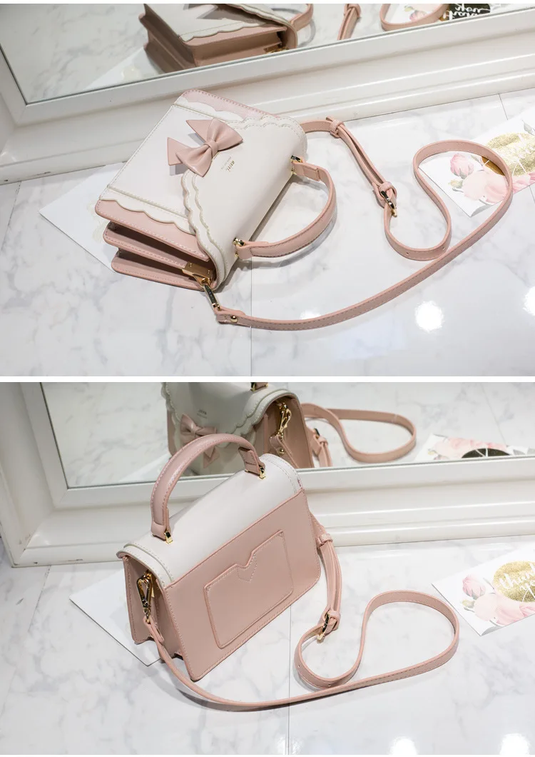 Bow lace small square bag lolita one shoulder slung female soft girl student lolita handbag JK uniform cosplay anime cute bag