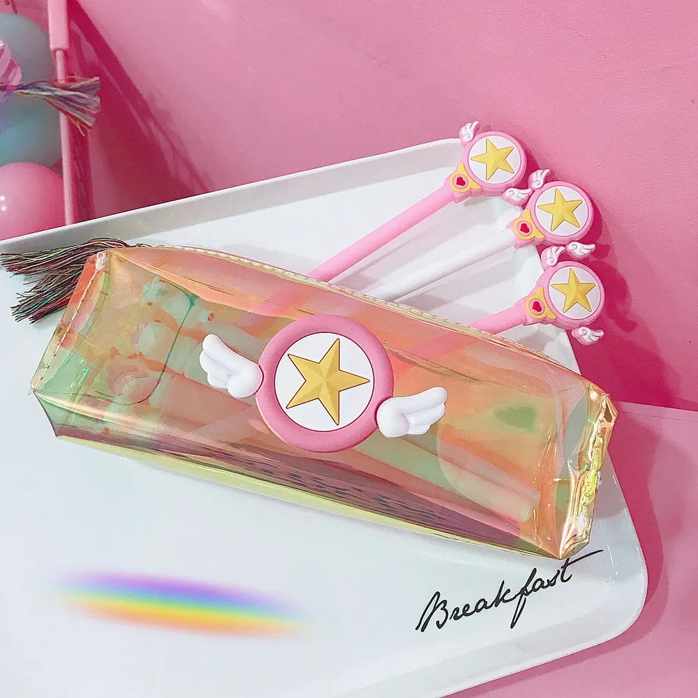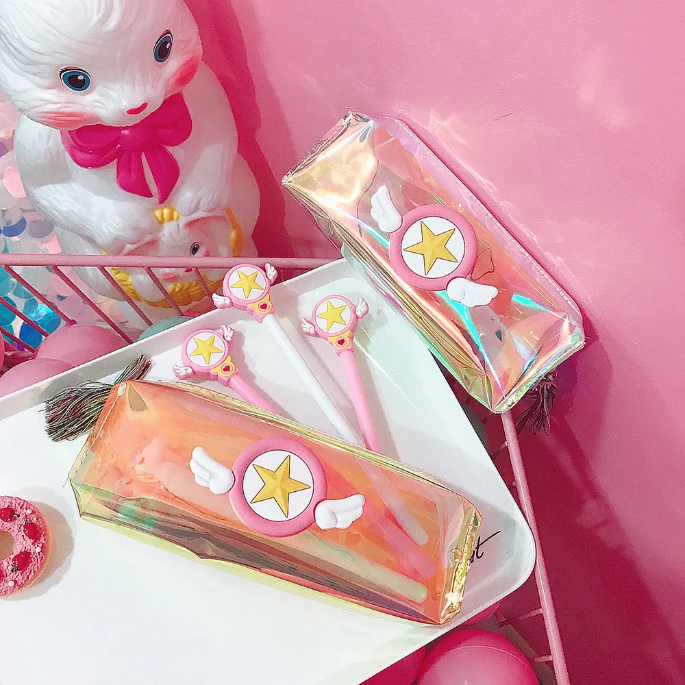 Card Captor Sakura Anime Printed PVC Laser Student Pen Bags Creative Pencil Office Stationeries Storage Cartoon Cosmetic Bag New