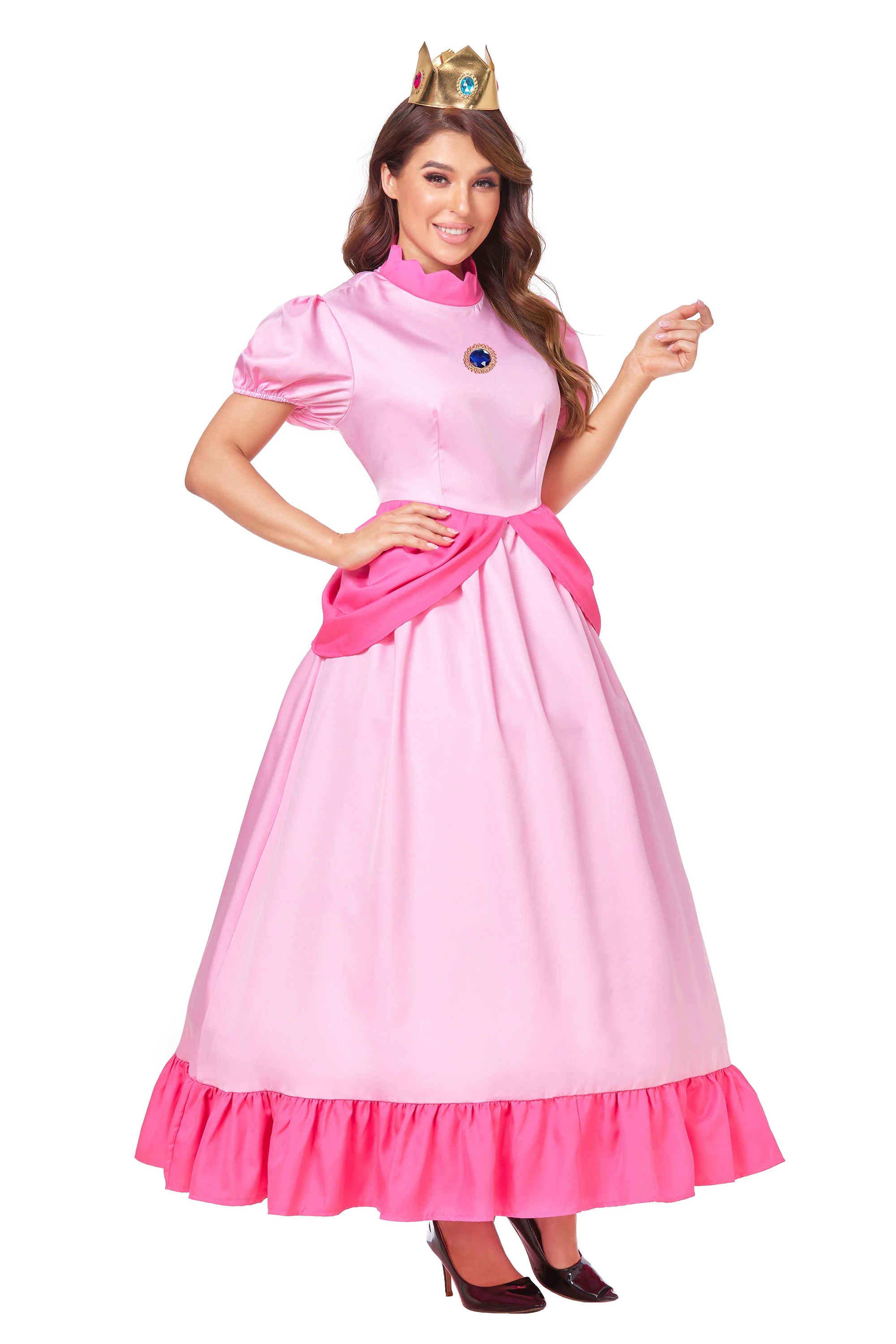 Daddy Princess Peach Cosplay Costume Peach Pink Dress Adult Rosalina Blue Dress Crown Suit Women Halloween Anime Cosplay Costume
